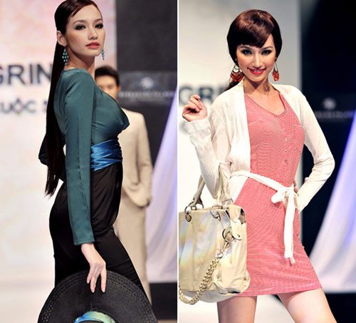 Trong hai bộ đồ của Kathy Uyên và Thân Thúy Hà, chiếc vòng màu sắc đều là điểm gây chú ý trước tiên. Trong nguyên tắc điểm nhấn này, những phụ kiện bản lớn hoặc độc đáo sẽ giúp một bộ trang phục trơn, đơn giản trở nên phong cách.