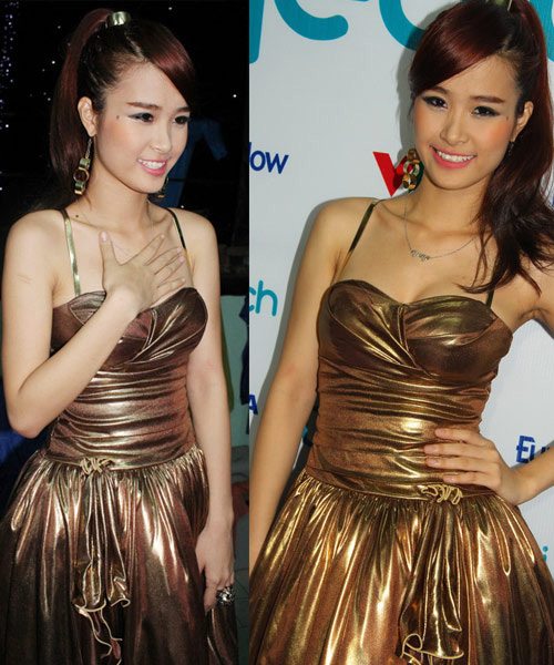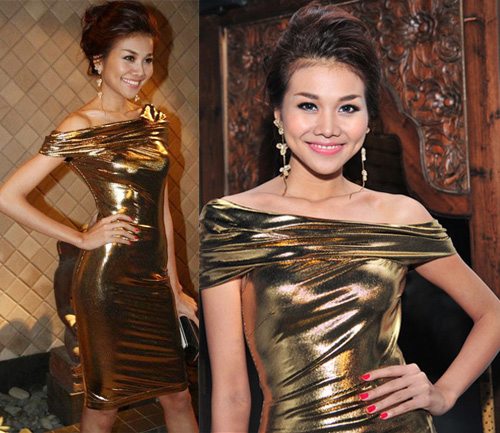 Không chỉ "bắt sóng" rất nhanh xu hướng thời trang thế giới, sao Việt còn biến hóa rất linh hoạt về kiểu dáng với trang sức kim loại đặc hay còn gọi là vòng đúc. Dù không quá cầu kỳ, kiểu cách nhưng những chiếc vòng tay hay vòng cổ đúc này lại tạo nên sự sang trọng và thời thượng cho phái đẹp. Vòng cổ kim loại hình trụ hay bán nguyệt, vòng tay màu vàng sáng bóng... là những kiểu phổ biến nhất. Bên cạnh đó, chúng còn được thêm vào trang phục như một vật trang trí ở cổ, eo... , tạo thành điểm nhấn độc đáo.