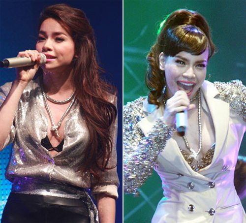 Vòng cổ đúc - xu hướng cực hot của năm 2011 được người đẹp Trương Thị May (trên cùng), ca sĩ Đoan Trang (giữa) và Yến Trang mix với các kiểu trang phục theo phong cách khác nhau.