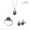 Bộ sản phẩm ngọc trai S2720 làm từ vàng trắng 18k đính kim cương và 4 viên ngọc trai biển Tahiti đen 7-8mm, hình dạng ngọc tròn