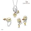 Bộ sản phẩm ngọc trai S5286 làm từ PS silver đính các loại đá quý topa/ citrine/ cz,… và 4 viên ngọc trai biển South Sea vàng 9-13mm, hình dạng ngọc tròn