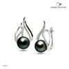 Bông tai ngọc trai E1416 làm từ vàng trắng 9k đính đá cz và 2 viên ngọc trai biển Tahiti đen 9-10mm, hình dạng ngọc tròn