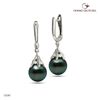 Bông tai ngọc trai E5240 làm từ vàng trắng 9k đính đá cz và 2 viên ngọc trai Freshwater đen 9-10mm, hình dạng ngọc tròn