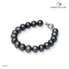 Vòng tay ngọc trai B1140 đính khóa PS silver ngọc trai Freshwater đen ánh tím 8.5-9.5mm, hình dạng ngọc tròn